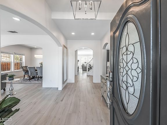 ASSUMABLE VA LOAN available. Perched above Wingfield Springs, this custom home offers stunning mountain, valley, and golf course views. Recently remodeled from top to bottom, it showcases modern finishes, light-filled living spaces, and seamless indoor-outdoor flow. The oversized garage, dedicated office space, and numerous upgrades throughout make this home as functional as it is beautiful. The interior features large-format waterproof and pet-proof porcelain tile imported from Spain, new appliances, downstairs junior suite and thoughtfully designed his-and-hers closets. The private backyard backs to open space, offering both tranquility and breathtaking scenery, while the cleared yard provides room for a pool or possible ADU. This property is truly the ideal blend of style, comfort, and Northern Nevada living.