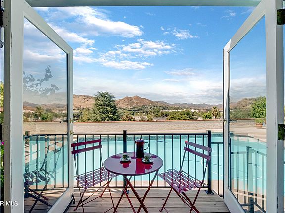 Exquisite Spanish Mediterranean Estate offers a phenomenal hilltop and cul-de-sac location with breathtaking top of the world nearly 360 degrees of unobstructed mountain, valley, city light and sunset views. Versatile 5 bedroom split-level floorplan boasts nearly 2,500 sq ft of living space highlighted with newer premium european engineered wood floors and travertine tile. Stunning open concept gourmet kitchen remodeled one year ago at 120k features quartz counters, center island with seating, Bosch appliances, kitchen skylight with retractable shades and high-end finishes. This spectacular kitchen is ideal for entertaining and overlooks a lush and vibrant garden setting. 3-year new roof and covered patio with all new spanish clay tiles. Private entertainers' backyard with sparkling pool, spa, endless sunset and mountain views. Enjoy the July 4th fireworks from your very own home! Formal living and dining room with french doors, viewing windows and stone fireplace. Separate lower-level family room with 2 adjacent bedrooms, full bath, laundry, wet bar, dining area, and slider doors to covered patio and views. Upper level primary bedroom suite with views, walk-in closet and bath with dual sinks and shower. Two secondary bedrooms up with sliders out to a massive balcony with newly resurfaced deck and more unbelievable mountain, canyon and sunrise views. New exterior paint in 2020, new pool heater install (400btu) in 2022, new custom Jeld Wen door in 2021, no HOA. The owners have invested a total of approximately 214k in the residence. Close to parks, award winning Schools, shopping, restaurants and more. A short drive to beaches. You will love the warm and welcoming Santa Barbara-esque type vibe this one-of-a-kind home offers, with everything you need, all in Agoura Hills! Location, location, location!