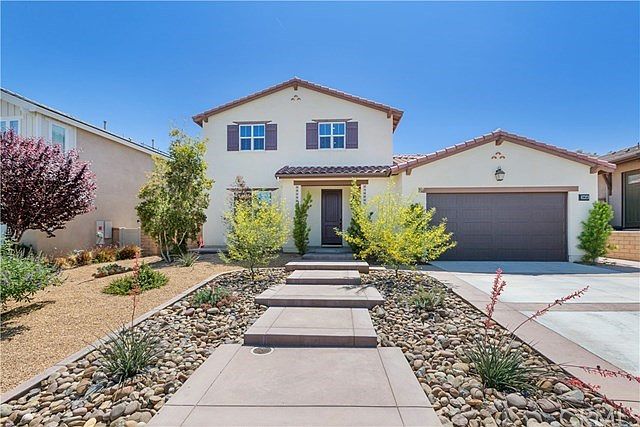 REDUCED!!!! This gorgeous 3837 sqft, 5 bedroom 3 bath with office/optional 6th bedroom, 4 car garage and paid solar is located in prestigious Audie Murphy Ranch Development in Menifee. Located within walking distance to the new neighborhood elementary school this home has many upgraded features. Neutral tile, floor coverings and paint create a serene ambiance when entering the property. There is a formal entry/foyer, formal dining area, open great room kitchen with breakfast bar/island and additional space for a dining experience in the kitchen. A large walk in pantry and ample cabinet storage will delight the serious chef. Additionally, there is a downstairs full bedroom and bath as well as an office/optional 6th bedroom. The great room has a large fireplace wired for TV above. Upstairs is grand and spacious. The master is a true suite with a welcoming spa style en suit bath and expansive walk in closet. The property features ample storage space in the upstairs linen closet and huge laundry room. A gigantic 4 car garage is ready to hold your cars, toys or tools. The front yard has lovely drought tolerant landscaping and many yards of beautiful stamped concrete. The Audie Murphy Ranch Community has over 1100 acres of open space. The sports court area includes a skate park and there are walk paths through out the community. Play grounds, picnic areas, pool and community clubhouse provide a welcoming atmosphere for the residents that get to call this place HOME!!
