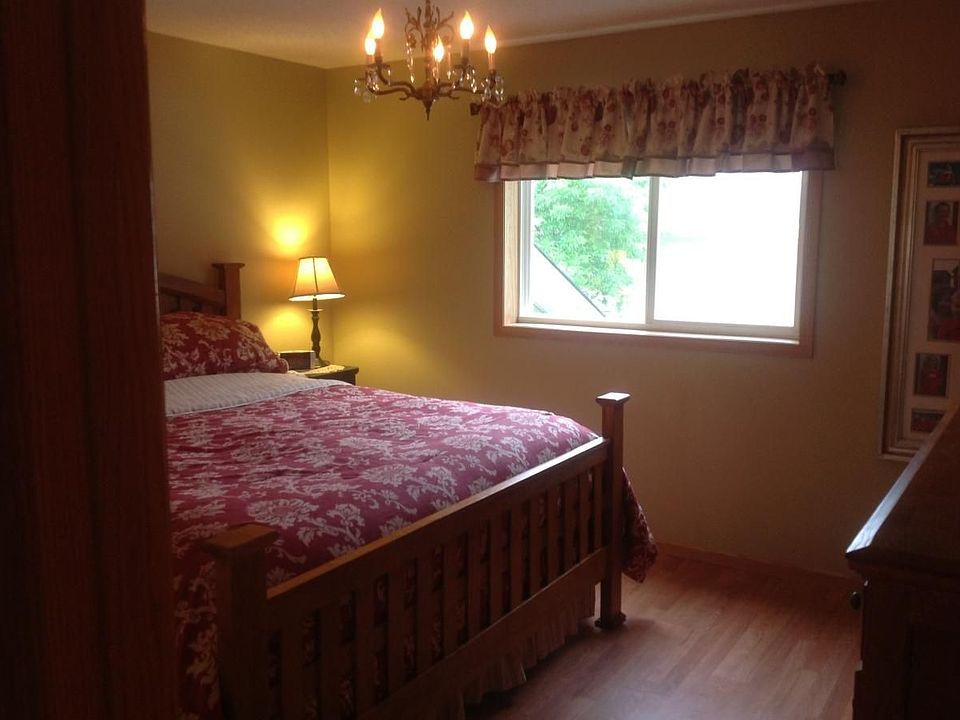 5 bedrooms 2 bathroom split entry. Large deck with garden and large trees.