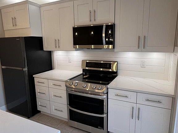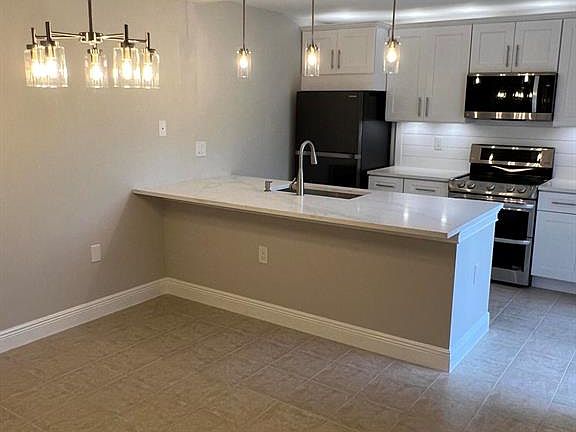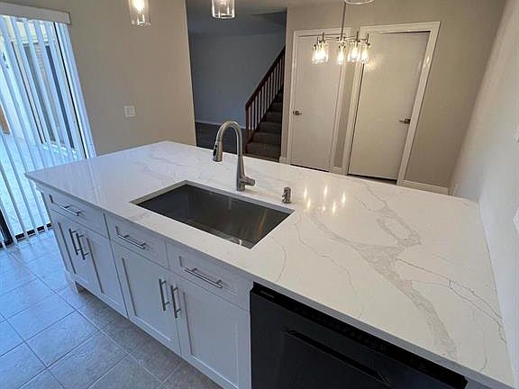 Private courtyard patioBeautiful quartz counter topsBerber carpetAccordion hurricane shuttersSs appliancesWhite cabinetry