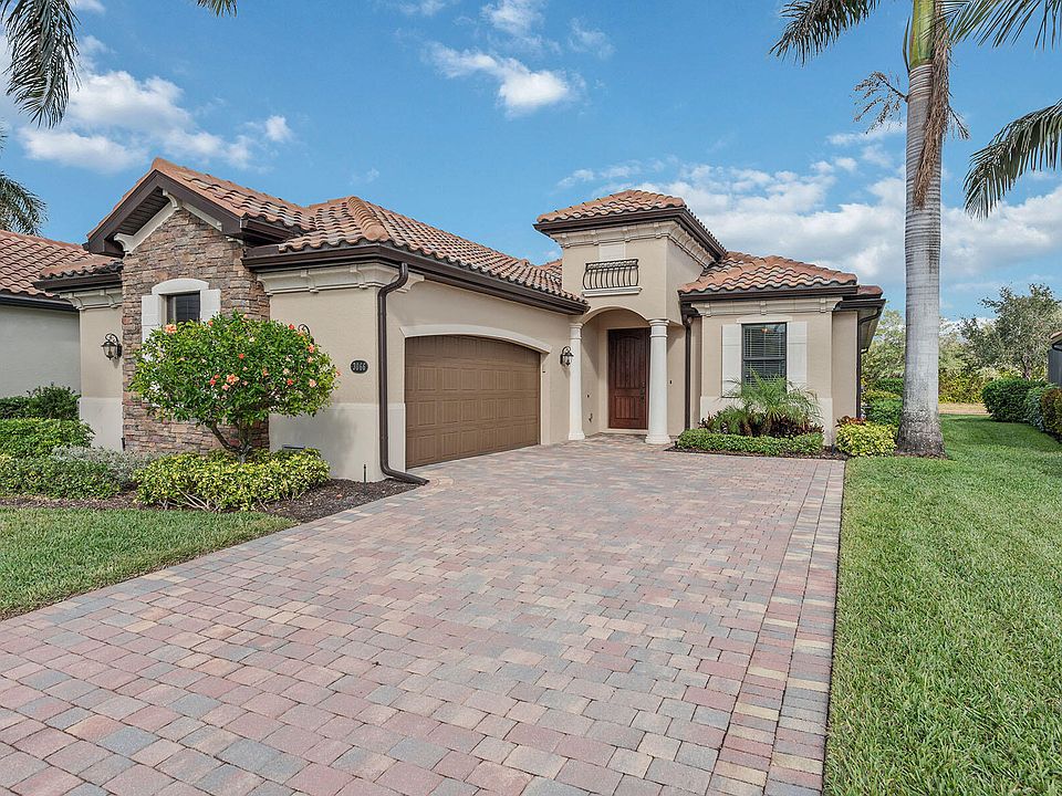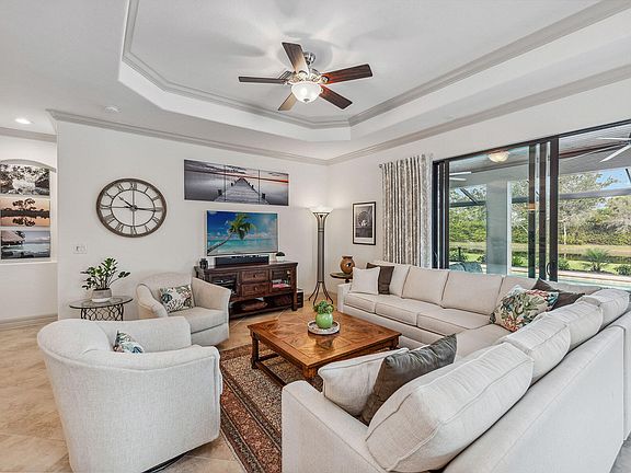 Turnkey furnished and immaculately maintained, this home in the desirable Millbrook neighborhood of Fiddler's Creek offers a peaceful setting with serene, private lake views. Designed for comfort and convenience, the residence features impact glass throughout, motorized storm screens outside the covered lanai, a whole-home natural gas generator installed in 2023, a brand-new AC system, and a new tankless water heater. Freshly painted inside and out and surrounded by lush tropical landscaping, this three-bedroom, two-and-a-half-bath home showcases elegant finishes including diagonal tile flooring, crown molding, custom ceilings, and recessed lighting. The open kitchen is a chef's delight with shaker-style cabinets with pullouts, a large island with bar seating and pendant lighting, granite countertops, a designer tile backsplash, and a walk-in pantry. Stainless steel appliances include a five-burner natural gas cooktop with hood, wall oven, built-in microwave, and newly replaced French-door refrigerator with icemaker and dishwasher. An adjacent dining area provides an inviting space for gatherings, while the great room features a tray ceiling and sliding glass doors that open to the lanai, creating seamless indoor-outdoor living. The owner's suite offers a private retreat with tranquil lake views, lanai access, a custom walk-in closet, and a spa-like bath with dual vanities, a walk-in shower with niche, and a separate soaking tub. Guest accommodations include a bedroom with an adjacent bath and frameless glass shower, as well as a flexible third bedroom or office with French doors and a closet. The laundry room includes built-in cabinetry, a utility sink, a GE top-load washer, and a GE front-load dryer with steam function, while the two-car garage is finished with epoxy flooring, storage cabinets, natural light, and a long paver driveway. The outdoor living space is designed for relaxation and entertaining, with an expansive panoramic-screened lanai, a heated pool and spa with waterfall, half bath, and multiple seating areas under a custom wood ceiling. A summer kitchen is complete with a stainless steel rotisserie grill, hood, mini refrigerator, stacked-stone backsplash, and granite countertops. Residents of Fiddler's Creek enjoy a 54,000-square-foot club and spa with dining, resort-style pools, fitness center, tennis, pickleball, bocce, spa services, and an active social calendar. Optional memberships include The Tarpon Club with beach and marina privileges and The Golf Club with its renovated course and clubhouse. Ideally located just minutes from Marco Island, downtown Naples, dining, shopping, and beaches, this home offers the best of the Florida resort lifestyle.