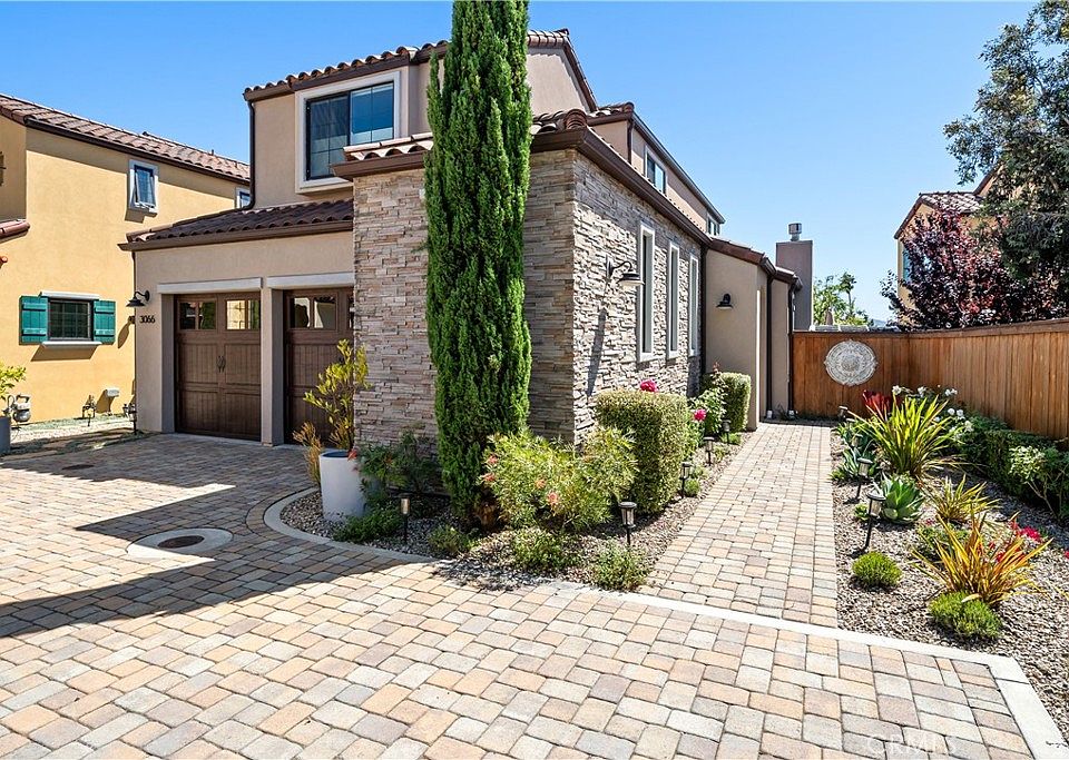 Former model home in the Italian inspired Toscano community! Nestled amongst the picturesque setting of the South Hills open space, this timeless enclave of homes enjoys views of surrounding mountains, tranquil hiking trails, and convenient access to the vibrant downtown, the Public Market, Trader Joe’s and SLO County Regional Airport. With three spacious bedrooms, including two primary suites with one on the main level, ideal for multi-generational living, and four luxurious baths, this Verdicchio plan offers approximately 2,256 square feet of thoughtfully designed living space. Perfectly situated to enjoy the surrounding natural beauty and to embrace the SLO lifestyle, this home exudes comfort and style. Stepping into the inviting floor plan, you are greeted with nearly $150,000 in builder upgrades, and upscale finishes such as travertine flooring, smooth trowel-finished walls, upgraded wrought iron/wood stair railing, and 8’ doors. The living room is a warm and welcoming space, framed by a cozy Heat & Glo fireplace with a stack stone hearth and wood mantel, ideal for unwinding after a day of wine tasting in Edna Valley or spending the day at Avila Beach. The heart of the home, the gourmet kitchen is an entertainer’s dream. An expansive island with bar seating, pendant lights, and granite slab countertops makes it both functional and stylish. The space is further enhanced by two-tone Alder cabinetry with soft-close features, LG appliances (refrigerator included), and a dining room with an attractive hanging fixture and a three-panel stacking glass door, perfect for gathering with friends. Each primary suite offers a walk-in closet, spa like en-suite baths with designer touches such as marble and limestone counters, mosaic accents, curbless walk-in showers encased in frameless glass enclosures and ceiling height tiled surrounds and enhanced with details such as decorative beams and luxury vinyl plank flooring. Ensuring plenty of space for family and guests, an additional guest bedroom is located on the upper level, adjacent to a well-appointed full bath, and a loft which can be re-imagined as a home office or study. Setting the stage for relaxation, the outdoor spaces include flagstone and concrete paver hardscape, a Mediterranean landscape design, and solar lights. Additional highlights include a two-car garage, laundry room with cabinets and included LG washer/dryer, tankless water heater, AC, and a hand-troweled finestone acrylic color stucco finish.