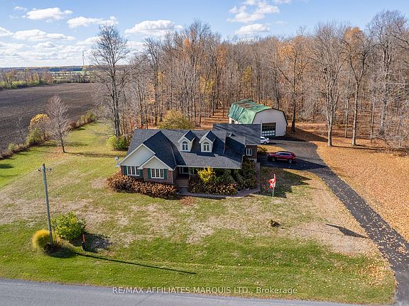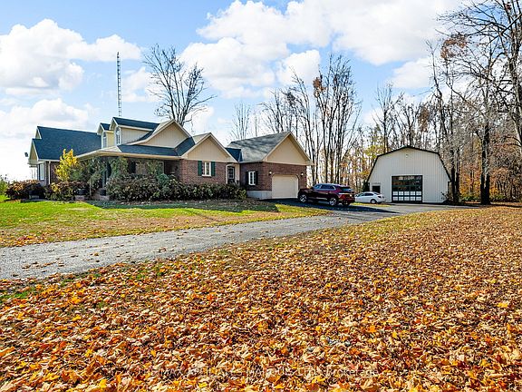 Set on a peaceful 1.7-acre lot surrounded by nature, this custom-built brick bungalow offers the kind of privacy and serenity only country living can provide. With no rear neighbours and sweeping views from every window - from open pastures in front to the forest beyond - this home was lovingly designed to embrace its natural surroundings. From the moment you arrive, its charm shines through: a wrap-around veranda draped in graceful vines and surrounded by colourful perennials, creating your own private sanctuary for morning coffee, evening sunsets, or quiet moments listening to nature. Inside, cathedral ceilings and an open-concept layout connect the kitchen, dining, and living areas, with a cozy fireplace adding warmth and character. The home features three bedrooms and two full bathrooms, offering comfort and functionality throughout. Large windows fill each room with natural light and views of the surrounding landscape. The lower level provides excellent potential for a family rec room, home gym, or hobby space. Outside, a large shed provides all the extra space you could want - whether it's for tools, projects, or a peaceful place to create. It's versatile enough to store your toys too - from snowmobiles and ATVs to that classic car you take out on sunny weekends. A wonderful blend of craftsmanship, comfort, and country calm - this home invites you to slow down, breathe, and enjoy life surrounded by nature.