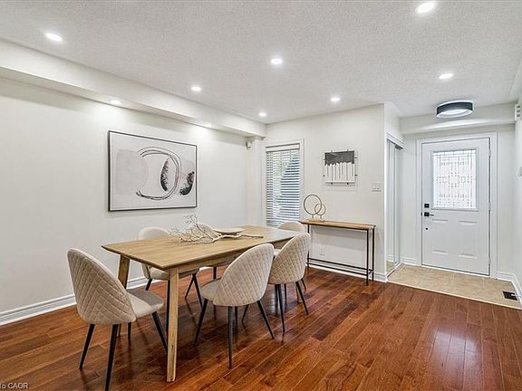 Located in Oakville's desirable Bronte Creek, this well-maintained 3 bedroom, 2 1/2 bathroom Freehold Townhome offers modern design, comfortable living space and a functional layout ideal for families, professionals or downsizers. The main floor features a bright and spacious dining room which could be converted to a family room offering flexibility based on lifestyle, convenient inside garage access, 2 piece bathroom, beautiful hardwood flooring, bright and modern living room featuring a cozy gas fireplace for cold evenings, and an eat-in kitchen complete with a stone backsplash, matching stainless steel appliances, a convenient breakfast bar and abundant cabinetry which leads to a low maintenance backyard with a 2 tier deck-great for entertaining or relaxation. The renovated upper level offers new carpet, two hallway linen closets, a large peaceful primary bedroom boasting a walk-in-closet and a modern upgraded spa-like 4 piece ensuite with a separate shower and a deep tub to soak in a perfect retreat after a busy day. Two additional good-sized bedrooms are served by the upgraded 4 pc main bathroom with a modern rainfall showerhead. A professionally finished basement provides additional living space, perfect for a recreation room, play room, gym, office or a possible 4th bedroom. Other highlights include pot lights on all 3 levels with separate switches for easy control of ambiance lighting, neutral paint colours throughout providing a clean, contemporary backdrop for various décor styles, smart home features including a doorbell camera which can be accessed via cellphone & a thermostat which can be accessed remotely or hardware in living room. This family friendly neighbourhood is close to top schools, parks, splash pad, trails, ponds, major Highways, Go Station, the Oakville and Milton Hospitals, and a short drive to Bronte Harbour to enjoy waterfront strolls and restaurants.