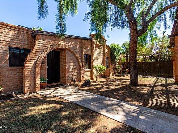 Discover the allure of this townhome in the desirable Spanish Gardens! With 2 beds & 1.5 baths, it tastefully blends modern style and classic charm. You'll love the seamlessly flowing living & dining room with vaulted ceilings! Neutral palette creates an inviting vibe, complemented by Saltillo tile flooring t/out. The kitchen boasts SS appliances, quartz counters, recessed lighting, & ample white cabinetry. One bedroom with its own toilet room for added comfort. The private covered patio is where you can relax! It also includes an attached storage/laundry closet for your convenience. Plus, assigned parking! Enjoy the Community pools, with one just moments away from the unit! Located in the heart of Phoenix, close to schools, shopping, restaurants, entertainment, & freeways. Move-in ready!