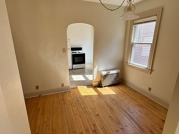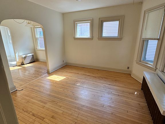 Hardwood floors throughout this apartment with great natural lighting. First floor apartment with its own oversized porch. Includes 1 off street parking spot. Available 10-1-25 for a partial term to the end of May, June, or July. Tenant pays for heat and electric