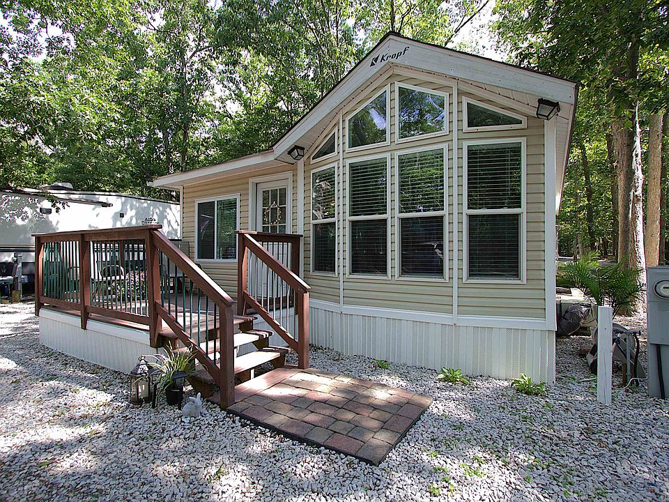 Cute, clean and ready for your enjoyment this lovely seasonal getaway at Echo Farms resort has been recently renovated with love, care and attention to detail. The roof is under a year old, the air conditioning was installed July 2025, new laminate flooring throughout, new skirt surrounding the exterior as well as newly installed rock from Lammana Stone for easy parking and low maintenance. This 2003 Kropf model trailer, #234 in the park, is on a corner lot with views of nature and a scenic horse pasture. The Sellers have installed a lovely gazebo area and purchased a new shed for additional storage needs. Inside features include 2 bedrooms and 1 full bath with tub and shower combination, a kitchen and spacious dining area. Making great use of space - the Florida room has been set up to offer a third space for sleeping. There is a ton of natural light with many windows. The seasonal fee of $7200.00 includes water, sewer and basic cable TV. There is a newer amp electric service which is billed monthly through the park. Park amenities include a nice play ground with jugle gym and swingset, basketball court, community pool area with lovely pergola and mature plants, laundry facilities, community rec hall and lodge area. This a mobile trailer purchase an therefore the land is lease and not owned. Potential buyers should contact managment office for the application. Furniture is negotiable. Buyers will have to pay a tax to the DMV at the time of purchase for title transfer. Only 6 miles to Sea Isle and Avalon beach towns! Some furniture included.
