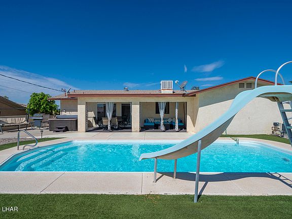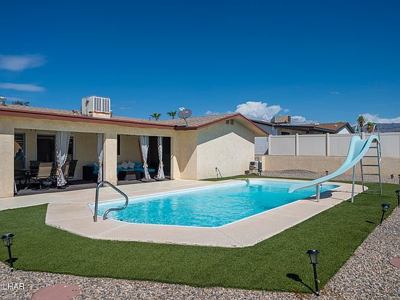 Welcome to 3066 Star Drive! This beautifully updated home offers the perfect blend of comfort, style, and outdoor living. Enjoy stunning landscaping and a beautiful front entrance that sets the tone from the moment you arrive. The property features RV parking with full hookups, a large pool with a fun slide, a spa, and plenty of covered patio space, ideal for entertaining or relaxing in privacy, as the home backs to a wash. Inside, you'll find two spacious bedrooms and two bathrooms, new flooring, fresh paint, new sliders, and a brand-new A/C system. The open kitchen overlooks the pool area, making it easy to enjoy the view and stay connected while entertaining. This home checks all the boxes, beautifully maintained and designed for the Havasu lifestyle!