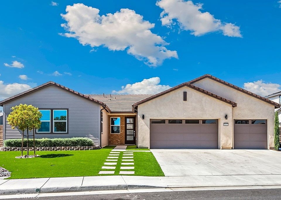 Versatile layout offers 4 bedrooms plus a double-door office/den that can function as a 5th bedroom. Two suites: a front bedroom with its own bath and walk-in closet, and a private primary suite with dual sinks, separate tub and shower, and a large walk-in closet. 3.5 baths total and an interior laundry room. The pool-sized backyard features easy-care turf and a wide covered patio for dining and lounging. Prime location near the community park, minutes to shopping and dining on Newport Rd, quick access to I-215, and I-15FWY. Great for Commuters! Energy-smart and move-in ready.