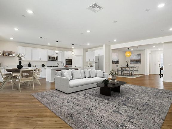 SOLAR PAID IN FULL! 4 Bedrooms Plus Office - Possible 5 Bedrooms!! Gorgeous single-story, huge corner lot, cul-de-sac location in Menifee. 2,767 sq ft and a 3-car garage! A bright, open great room anchors the home—combining a spacious family area and sunny breakfast nook—with a separate, formal dining room for special gatherings. The chef’s kitchen boasts a large seating island (3–4 stools), white cabinetry, granite counters, stainless appliances, step-in pantry, and extensive storage. Luxury vinyl plank flooring runs through the main areas (carpet in bedrooms/den), and a cozy fireplace completes the living space. A whole house soft water system adds comfort and convenience throughout.
