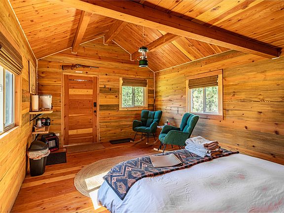 There are two cabins and 3 wood platforms that are ~16 X 20 for Tents. Each Tent platform has a propane fire pit. The first cabin is charmingly designed and fully finished on the inside, that includes a small room, kitchen, living area, and additional loft space. It rests on cinder blocks, adding to its rustic charm. It has a propane heater. The second cabin is 12x16 and constructed of dovetail lumber with a classic cabin feel, set on cinder blocks.