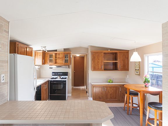 This beautifully redone 3 bed 2 full bath home, located on a peaceful cul-de-sac, is move- in ready! Desirable split bedroom floor plan with a large walk in closet and private bath in the primary bedroom. Ample kitchen with an open concept to the dining and living room, all with tons of natural light. Plenty of cabinet storage and counter space with the middle island. New paint and flooring throughout. Large, private and fully fenced yard that has room for additional parking. 2 storage sheds, washer and dryer included. NO LOT RENT! And HOA $87 per year with irrigation water. Buyer to verify all information including measurements & square footage, all information subject to change or error.