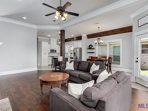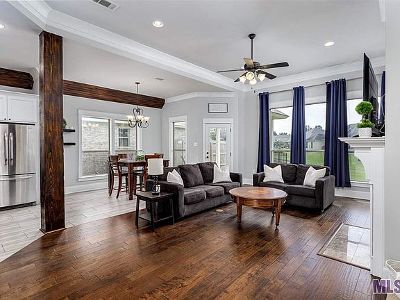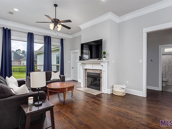 Gorgeous 3 bedroom 2 bath home with modern color scheme situated on a large lot. Entering you will notice the open split floor plan with a spacious living room, gas log fireplace, high ceilings with cove crown molding, and wood flooring throughout main area. Kitchen has large island, granite counter tops, custom subway tile backsplash, gas range/oven, and lots of cabinet space. Computer nook located off of kitchen area. Master Bedroom is spacious and has an en suite bathroom with double vanity sinks, separate shower, garden soaking tub and large walk-in closets. Additional bedrooms are a great size with walk-in closets. This home was built for entertaining with a covered patio area, and a large backyard overlooking a serene pond. Great curb appeal.** Did Not Flood **
