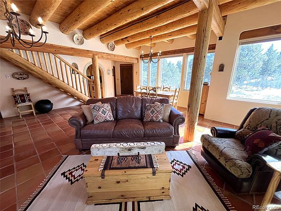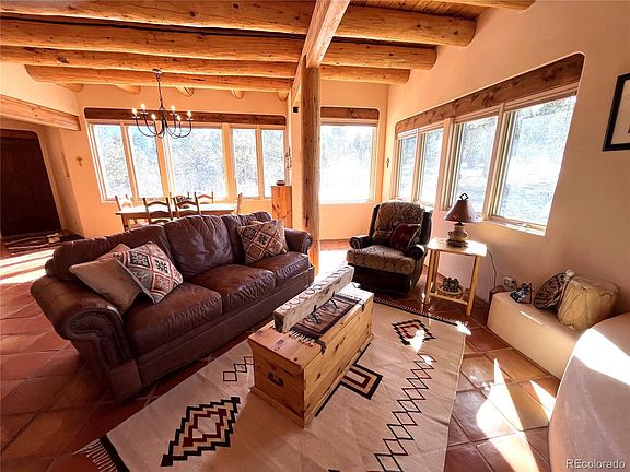 Beautiful Southwestern home being sold mostly furnished. This home exudes Southwestern charm with decorative tiles, Saltillo floor tiles, and a stylish Kiva adobe fireplace in the family room. Enjoy breathtaking views of Mt. Princeton, Yale, Columbia, and the Buffalo Peaks range from various vantage points throughout the home. This vibrant home embraces the true Spanish spirit with its rich colors and unique design elements. As you walk in you will feel the southwestern style with the large family room open to the dining area and a convenient 3/4 bath for all your guests. The warm and inviting kitchen features custom cabinets, Corian countertops, tile flooring, and comes fully equipped with all appliances and a nice size pantry. The utility room just off the kitchen area. Upstairs, you’ll find the primary bedroom that opens up to the balcony deck and a 3/4 ensuite. The master has a gas sealed fireplace with remote. The two additional bedrooms are super cute and have a full jack-n-jill bathroom. One of those bedrooms also opens to the stunning balcony deck, perfect for relaxing and taking in lots of vitamin D. All bathrooms have Mexican tile sinks and custom cabinets. The home has been lightly used and is in good condition. Conveniently located just 12 minutes from town, this property offers the perfect blend of tranquility and accessibility. Game Trail is a well-established, welcoming subdivision featuring a central water system, well-maintained roads, trash and recycling services. Game Trail has established hiking trails that lead directly into the National Forest and to the Colorado Trail. Don't miss out on this exceptional unique southwestern home. If you're looking for a move-in-ready home full of character, this one is a must-see!