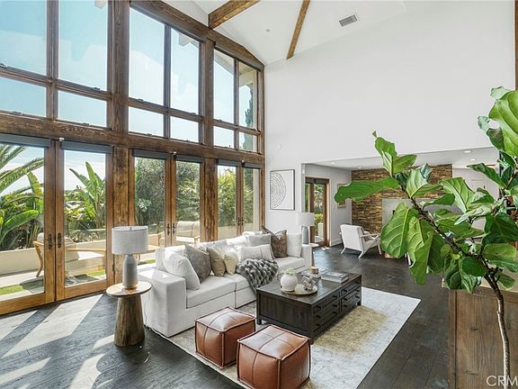 Beautiful and Stunning Custom Contemporary Ocean View home located on top of a private drive well above the street. This three bedroom, three bath with an additional first floor office that doubles as a fourth bedroom artist's home features authentic wood floors, vaulted ceilings, a spectacular open floorplan, glass second floor cat-walk, a modern solid wood kitchen with professional stainless steel Viking Pro appliances, quartz counters, double sinks, a separate utility room, a three car garage with EV NEMA 14-50 charging, central A/C, all on a usable 20,576 square ft. lot. This home was meticulously remodeled to the finest standards to create a completely usable home and yard that flow seamlessly. The great room wall of glass opens to the handsome oversized pool and fountain spillway spa, a large patio for entertaining and private terraced Lombardy deck surrounded by mature junipers. The three additional ocean and harbor view bedrooms are upstairs, The huge primary walk-in closet is almost as large as the primary bedroom itself, tons of natural light and two with their own Verona balconies with glass railings. On a clear day you can see all the way past Newport Beach. The third car garage stall is currently set up as a home gym with zone A/C and heat. It can easily be converted back. This home has designer touch overload. Don't miss out on this unbelievable difficult to find Palos Verdes, Spanish contemporary masterpiece.