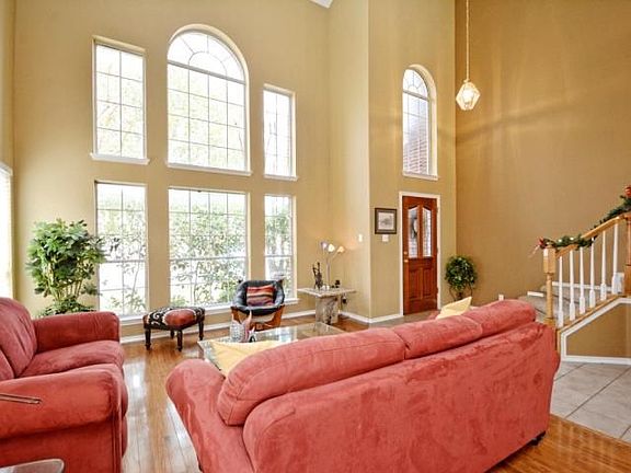 Stunning 2 story home featuring bright open floor plan with office/flex room down, could serve as 4th bedroom. Expansive kitchen w/ island open to great rm. Gleaming hardwood floors in living/dining, family, and flex. Impressive windows throughout for loads of natural light--and peaceful viewing of the sparkling pool/falls. Large master suite up; 2 other good-sized bedrooms w/ Jack-n-Jill and open, bright game/loft area. Wonderful established neighborhood with great location and excellent RR schools.