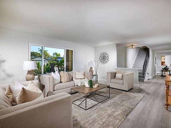 Located on a quiet cul-de-sac nearby local beaches, parks, shops, golf courses and restaurants, this inviting home offers a relaxed coastal lifestyle. Set in an established neighborhood of Bay Park, in close proximity to the numerous recreational opportunities at Mission Bay, the residence includes a newly refreshed interior with all new flooring and paint, an open floor plan and a spacious main floor bedroom suite with a sitting room. This configuration is perfect for a future ADU or Multi-Generational living. An entry courtyard and attractive front doors set the stage for this home, which features a large open living room and an adjacent dining room for entertaining. Casual occasions are enhanced by a family room with a fireplace and a secluded backyard with an expansive brick patio— perfect for hosting friends or just relaxing outside in the sunshine. The kitchen is ready for the demands of modern life, as it has a gas range, ample cabinet and counter space. Offering something for everyone, the home includes an upstairs primary suite with an en suite bathroom, plus three large secondary bedrooms. Meticulously refined over the years and presented for sale for the very first time, the home also features an attached two car garage, new carpet and LVP flooring, a cedar-lined walk-in closet off the main floor bedroom suite, a large shed and an oversized lot. Certain to let the imagination run wild, the raised terrace area over the private backyard could be perfect for a fire pit or just watching the stars, fireworks or blooming succulents in the springtime. With a peaceful yet convenient location nearby everything San Diego has to offer, including the airport, Sea World, Tecolote Canyon, USD and Belmont Park, this airy coastal home is a great opportunity.
