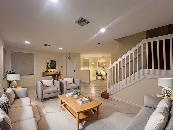 Welcome to this inviting two-story corner unit townhouse, combining comfort with convenience.The first floor features tile flooring throughout and an open floor plan that enhances the spaciousatmosphere, perfect for hosting gatherings or simply relaxing. It features a spacious living area, dining area, a cozy kitchen, and a convenient powder room. The cozy kitchen boasts ample storage space, ensuring convenience in meal preparation. Recently upgraded withone year new AC, washer, dryer, and accordion shutters (on both 1st & 2nd floor windows), this home offers modern comfort and security. On the 2nd floor, it features three bedrooms with laminate flooring that enhance the warmth and elegance, two full bathrooms, a laundry area, and a versatile loft space. Step outside to enjoy the ... private backyard oasis, a serene retreat for peaceful moments. Conveniently located for commuters, this residence provides easy access to I-95 and is just a short distance from local shops and restaurants. Despite a single-car garage, the driveway accommodates two vehicles effortlessly. The community features a clubhouse, pool, basketball court, fitness center, playground, and picnic area. Don't miss the opportunity to experience the comfort and convenience of this well-appointed townhouse that you could make it your home sweet home!