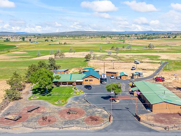 This property not only has everything Powell Butte has to offer but more. For starters the 3032 SF home features 3 bedrooms, 2 full baths & 2 half baths. Great room concept w/large breakfast bar, spacious dining area & kitchen built to entertain. Kitchen includes 6 burner range w/double ovens, granite counters & enormous butler's pantry w/ additional work space. Primary bedroom is large w/ room for exercise equip. & existing sauna. In addition there is a large, vaulted game room w/outside access & it's own bathroom. Perfect space for dual living. For the occasional guest you have a 2 bedroom guest house w/ full bath. Under 3000+ SF of roof is a shop w/110, 220, & 3 phase power, & large walk in freezer. Plenty of space for projects, classic cars or maybe a business? 74 acres w/ 65 acres of gravity fed, flood irrigation. No pumping charges. The property is fenced & cross fenced with barn w/hay storage & 5 stalls. Paved drive & ample parking. Fabulous mountain views!