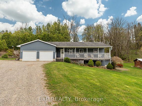 A Rare Country Gem with River View, Privacy, and Over 1.5 Acres in Hungry Hollow! Welcome to an incredible opportunity to own a special property in the charming hamlet of Hungry Hollow. This peaceful retreat offers a lifestyle most people only dream about, with over 1.5 acres of private, beautifully landscaped, with breathtaking views of the river while relaxing from your front porch. Yes, you can enjoy your morning coffee while taking in a tranquil river view. How cool is that? This well-built, spacious bungalow offers over 2,700 square feet of finished living space and checks all the boxes for comfort and functionality. With 4 bedrooms and 4 bathrooms, there is room for the whole family and friends. The main level features a practical and welcoming layout, beginning with an oversized mudroom/laundry area conveniently located by the attached 2-car garage. Adjacent to this is a versatile space perfect for a home office or an additional bedroom. A handy 2-piece bathroom connects you to the heart of the home. The bright kitchen and generous dining area flows effortlessly into the open-concept living room, which opens onto a 40' x 10' covered deck offering panoramic views of the river and countryside. Also on the main level are two additional bedrooms, a spacious 4-piece main bathroom, and a large primary suite complete with a walk-in closet and private 3-piece en-suite. The lower level continues to impress with a cold cellar, utility room, craft space, and an expansive rec room featuring a cozy gas fireplace. Fitness enthusiasts will appreciate the workout room and private hot tub room, perfect for unwinding. The walkout basement leads to a lovely patio, ideal for summer entertaining. Don't miss the private walking trail leading up the hillside and enjoy spectacular views of the entire property. Words like peaceful and unbelievable truly capture the feeling of this country paradise. Book your showing today!