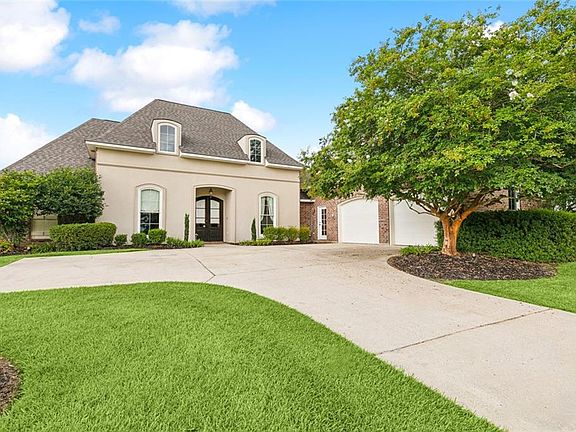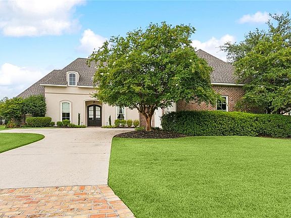 Discover Serenity and Comfort, replace deadlines with tee times and traffic with tranquility in this beautiful French style estate in Carter Plantation. The home entrance features arched double door, opening into a foyer where 12-foot ceilings and wide plank floors set a tone of elegance. The extensive use of hand-milled moldings and walls of windows not only enhance the home but also ensure an abundance of natural light and a seamless connection with the outdoor scenery. The formal dining room flows effortlessly into a gourmet kitchen designed for both functionality and style. The kitchen boasts sleek slab granite counters, custom built wood cabinets and stainless steel appliances. The adjoining breakfast nook and the cozy den featuring a fireplace offer stunning views of the beautifully landscaped backyard, which overlooks a serene pond. The residence is designed with versatility and comfort, including a generously sized owner's suite with a cathedral ceiling and an adjoining sitting area, the spacious main bathroom features a frameless glass shower stall and a tub providing relaxation and comfort. Additional space upstairs offer the potential for a home office or workout area. Enjoy the outdoor living spaces with a large pergola and a fully equipped outdoor kitchen. Located at the crossroads of Baton Rouge, St Tammany P. and New Orleans, offering a unique blend of history, community and world class golf and entertainment facilities. Never flooded! Privacy and comfort! Must see!