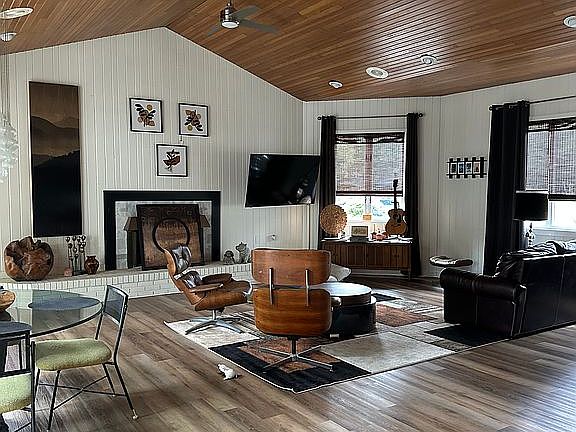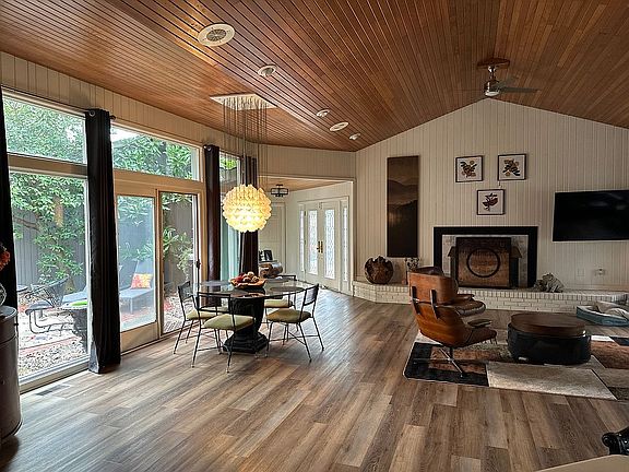 This home is a warm open Mid-century modern home with a massive living space, kitchen and vaulted wood ceilings which invite you into another space, your space. The master bedroom is huge and with sliding glass doors off of the Master and Great room, it's been said that it is a Beverly Hills mansion nestled in quaint Edgewood.