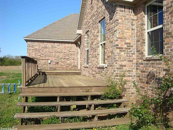 Very nice house that has had the garage enclosed to make a 4th bedroom or a den. The house has formal dining plus eat-in kitchen with lots of oak cabinetry, a saferoom that can be used as closet until needed, large back deck, newly installed septic system, no carpet except in one room, shower and whirlpool tub in master bath, underground power lines. Mineral rights are leased and negotiable. More land is possibly available behind the house.