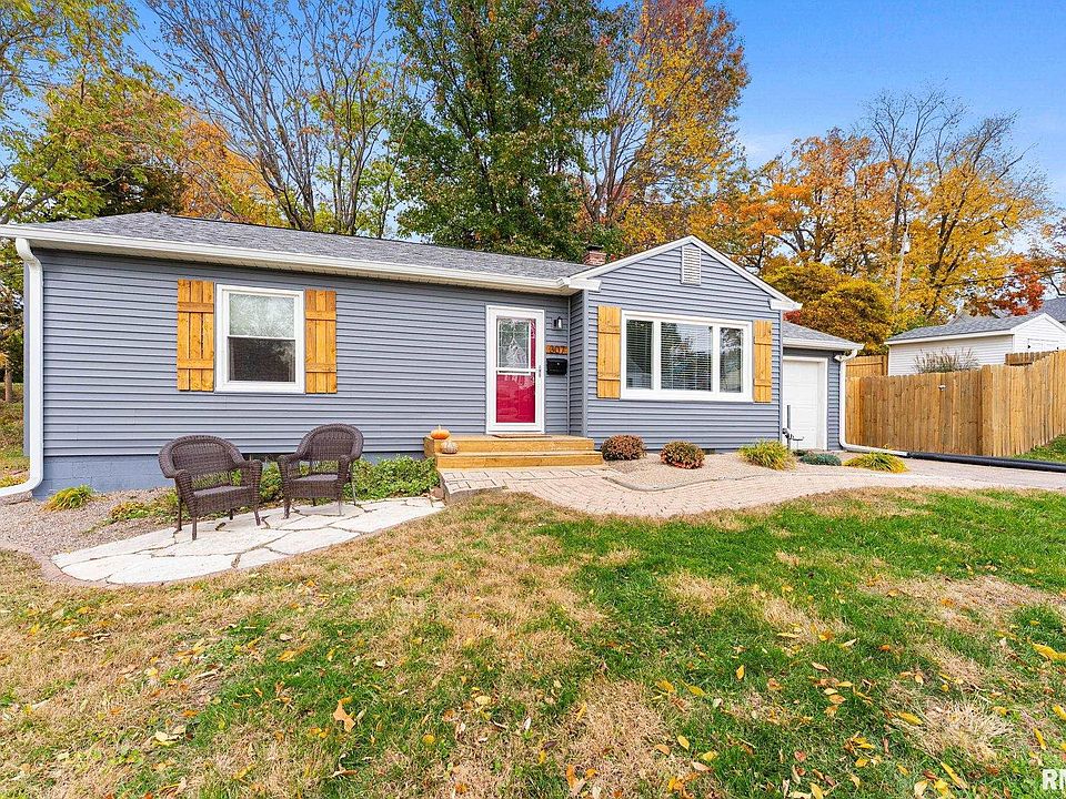 Tucked on a quiet corner lot surrounded by colorful trees, this charming ranch feels like home the moment you arrive. The fresh exterior, warm wood shutters, and cozy front patio set the tone for a place that’s been lovingly cared for. Step inside and sunlight pours through the picture window, filling the living room with a gentle glow. Soft finishes, warm flooring, and thoughtful touches create a space made for slow mornings, family gatherings, and peaceful evenings. The dining room opens to a beautifully updated kitchen where rich cabinetry, sleek counters, and stainless appliances make every meal feel special. Two main-level bedrooms offer comfort and calm, each with plenty of natural light. The updated bathroom blends modern style with timeless character, complete with a marble-look vanity and subway-tiled tub. Downstairs, the home truly opens up, with a spacious rec room perfect for movie nights, a tucked-away office nook for quiet work, a stylish second bathroom, and a large laundry and craft room with storage for everything. A large conforming bedroom with egress and oversized walk-in closet adds even more flexibility. Step out back to a fenced yard wrapped in privacy, with a shed for storage and room to play, grow, or simply enjoy the seasons. This is the kind of home that feels lived in, loved, and ready to welcome its next chapter.