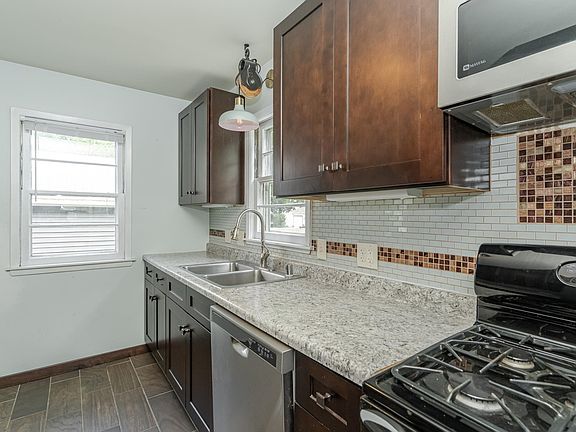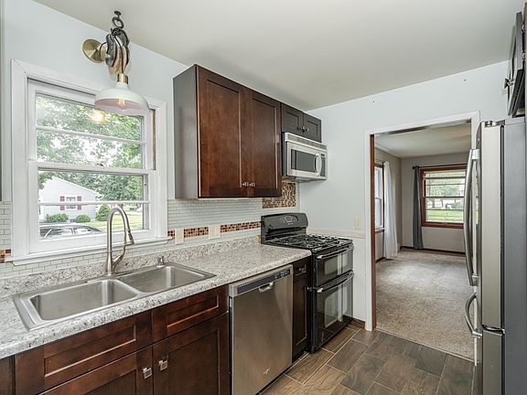 The main floor of this spacious four bedroom home, conveniently located near the schools, offers an updated kitchen with beautiful cabinets, counters, tile backsplash, ceramic flooring, and great appliances, a large living area, two nice-sized bedrooms with hardwood floors and large closets, and an updated full bath with ceramic floors and tub/shower surround. The second level has two more nice-sized bedrooms with closets and the unfinished attic could easily be finished for a play room or den. The basement is unfinished with a laundry area, stool and shower, and lots of storage space. Outside enjoy a fenced back yard with a fun fire pit and a good-sized two-stall garage. Recent updates include a renovated kitchen and bath, updated electrical, furnace, and water heater (2014), new carpet (2018), and recent upgrades to the garage door, window, siding, and water softener (2023).
