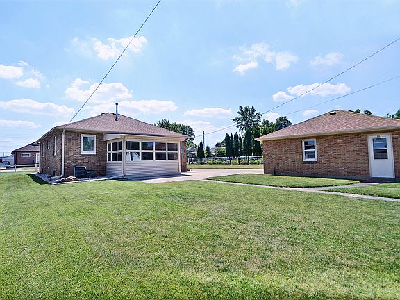 A well built and well maintained Eickelkraut Home. An all brick ranch style home sitting on two completely fenced lots with a large 2 car garage. Spacious living room with bright windows, two large bedrooms, spacious eat-in kitchen, full basement with laundry area and much potential for finishing. Inviting, enclosed back porch and a cozy, open front porch. Beautifully maintained yard. Concrete drive. Roof new in 2017. Most windows replaced 2017 with quality Pella windows.