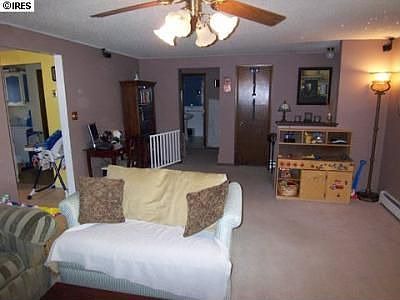 Brick ranch just blocks from park with fresh interior paint, spacious rooms, crown molding in the bedrooms, & new argon gas windows throughout. Charming updated bath with wainscoting & attractive vanity. Kitchen has new counters, Stainless Steele range/oven, washer/dryer, & refrigerator. Large fenced yard with storage shed & garden area. This home offers an oversized 2 car garage, gas hot water heat, & easy access to Berthoud & Loveland. Please give day ahead notice for showings before 2pm M-F & at least 2 hours notice otherwise. Located in Derby Hill subdivision. Thompson R2-J school district; Truscott, Reed (Bill) Jr. High, and Thompson Valley High School.