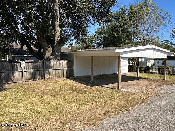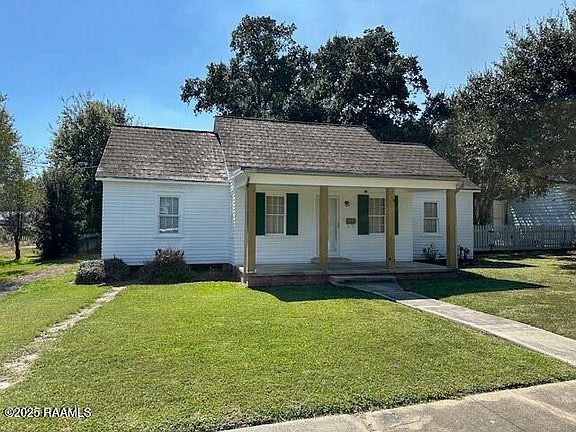 Conveniently located just a block from Godchaux Park, 2 blocks from Champagne's Supermarket and just a few blocks from Downtown Abbeville and all it has to offer. This home was well built in the 1950's of wood frame on piers type construction with a slate roof and was partially renovated over the years. An addition was made in 1985 with wood and brick on slab type construction. It contains a total of 2382 sf+-. of living area with a split floor plan that includes 3 bedrooms, 2 baths, living, dining, kitchen and a large den with wet bar, custom cypress cabinets and v-grooved cypress walls with great views of the fenced-in courtyard and large live oak tree. There are also a small gunroom and office within the addition. The entire exterior and the interior of the addition have just been repainted with repairs made as needed. The double carport is accessed through an alley at the rear of the home. Don't miss this opportunity to live in this well-established and walkable neighborhood!