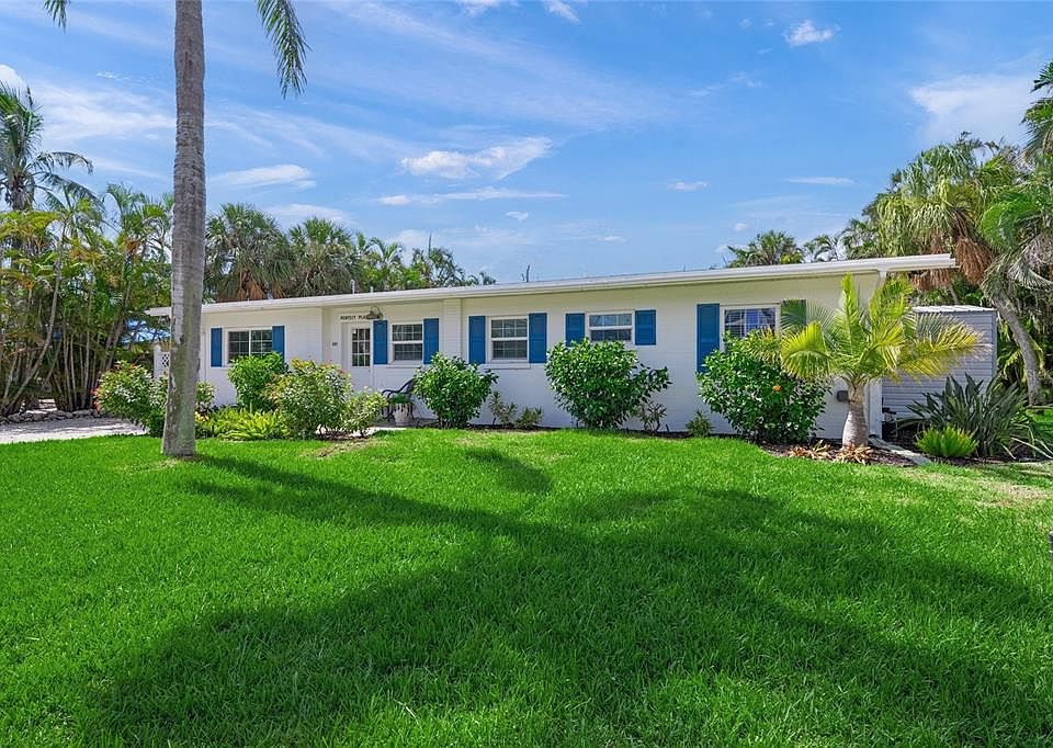 Coastal elegance meets modern living in this beautifully updated Holmes Beach retreat located on the peaceful stretch of 57th Street—one of the narrowest parts of Anna Maria Island. This prime location offers the least crowded beach access on the island, just steps from the shoreline. The home features sun-drenched interiors, thoughtfully designed living spaces, and a lush backyard ideal for both entertaining and relaxing. Recent upgrades include a refurbished large, heated pool completed in 2024 with a new pool heater, plus pool and AC equipment elevated seven feet above sea level for added peace of mind. Saltwater-resistant terrazzo flooring and moisture-proof six-inch plastic baseboards are tailored to beachside living. A secure eight-by-ten shed with keyless entry adds convenient outdoor storage. Smart home features include Wi-Fi control of the thermostat, sprinkler system, pool pump and temperature monitor, and security cameras, including one with 360-degree remote view. A 5G wireless router keeps the home connected for just $30 per month, eliminating the need for cable. Additional property highlights include a whole-home water softener, reverse osmosis water filtration for the kitchen spigot and ice maker, three TVs, a sound bar with subwoofer and Bluetooth connectivity, and all-new furniture and appliances purchased in 2024, including the washer, refrigerator, and stove. Beach essentials such as a bike, buggy cooler, eight beach chairs, and several umbrellas are included. Outdoor amenities include a weatherproof aluminum ping pong table, screened lanai (new in 2022), and stylish lanai furniture. The property also includes reinforced door panels designed to make the home watertight up to 32 inches above ground level (5.5 feet above sea level). Located within walking distance to restaurants, boutiques, a seafood and specialty grocery market, clothing shops, hardware stores, and multiple ice cream shops. This home also offers nearby access to lighted tennis courts, pickleball, basketball, baseball fields, and two dog parks. This meticulously maintained property offers exceptional versatility and comfort in one of the most coveted locations on Anna Maria Island.