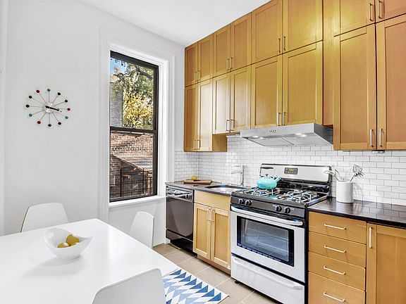 *Accepted Offer* Located on the second floor of this classic corner limestone building is a move-in ready, spacious two bedroom pre-war coop featuring 10' ceilings, red oak hardwood floors, original picture molding and double exposures letting in magnificent light. This self-managed coop has a common roof deck with breathtaking views of Manhattan. The light pours into a modern windowed eat-in kitchen updated with white subway tile, granite counters, a Liebherr refrigerator, Grohe faucet, and plenty of shaker cabinets to store those extra essentials! The bedrooms are conveniently located on opposite sides of the home and each has its own large closet outfitted with Elfa shelving. The primary bedroom can easily fit a king size bed. The bath features Porcelanosa tile, a built-in Robern medicine cabinet, Toto toilet, and Grohe fixtures. To finish this perfect package, you'll find an in-unit stackable Miele washer and dryer in a walk-in closet next to the kitchen. Space for an office nook in the large foyer completes the picture. Storage in the basement and stroller storage are also included. The building has excellent financials, no underlying mortgage, super low maintenance, and a flexible sublet policy. Building will permit 10% downpayment and pet-friendly upon board approval.