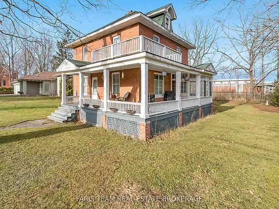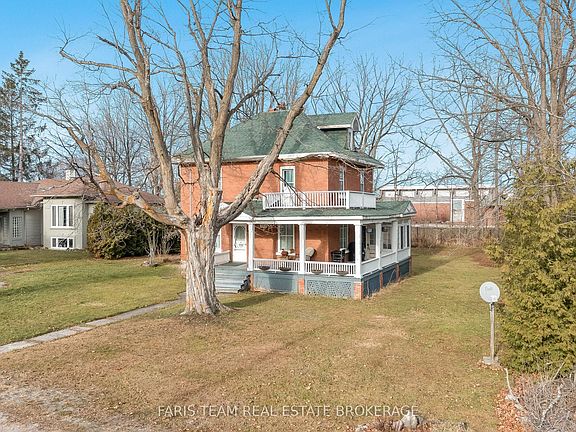 Top 5 Reasons You Will Love This Home: 1) Make the most of this oversized lot that gives you plenty of space for kids, pets, gardens, a future garage or an addition, all while still being close to everything in town 2) Wraparound covered porch, classic all-brick exterior, hardwood floors, and stained-glass windows bring true character and warmth, offering a charming curb appeal along with inviting spaces to relax, entertain, and enjoy the neighbourhood in every season 3) Three comfortable bedrooms plus a den offer flexibility for a home office, playroom, or guest space, while the main level flows well for daily living, and the mudroom helps keep life organized 4) Move-in-ready with an updated roof and wiring, providing peace of mind on two big-ticket items, while the unfinished basement and large lot make it an ideal property for weekend projects and long-term value-add improvements 5) Walk to Georgian Bay in minutes for swimming, boating, and evening strolls, and enjoy quick access to Highway 400 and Highway 12, making commuting and day trips simple while still enjoying a relaxed small-town lifestyle. 1,508 above grade sq.ft. plus an unfinished basement.