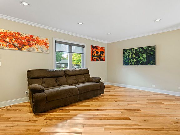 Located in a quiet tree-lined street, this lovely updated home has 3 bedrooms and 1.1 bathrooms. The property features updated amenities, including a new furnace and air conditioning system in 2025. New bathrooms, hardwood floors, an open floor plan with recessed lighting on dimmers for setting the perfect mood, and an automatic gas start fireplace that warms the lower level on cozy nights. The new kitchen is stunning, the 8X4 quartzite island with custom pendants, storage and seating for 4 is open on the main level. Easy to host friends and family in this home. There are tons of upper and lower-level white custom cabinets and plenty of counter space for prepping family meals. One entire wall of double stacked cabinets makes this the perfect pantry. The upper level of this home offers three large bedrooms with customized closets and a new hall bath with an extra deep tub with bubble jets. Neutral decor is found inside and out. The home is situated in a quiet cul-de-sac location and boasts a large, 6 FT fenced-in yard with a new concrete patio. Additional custom lighting is found here for entertaining late into the evening. The property benefits from the local school district, which includes Hawthorn Schools and Vernon Hills High School. Walk to parks, library, pools and water parks and all neighborhood elementary schools. Updates throughout the home include a new roof, new concrete patio, new garage door with touch pad and door opener. New windows, as well as new siding and doors provide a well-maintained and modern living environment. This Home Is Move in Ready.