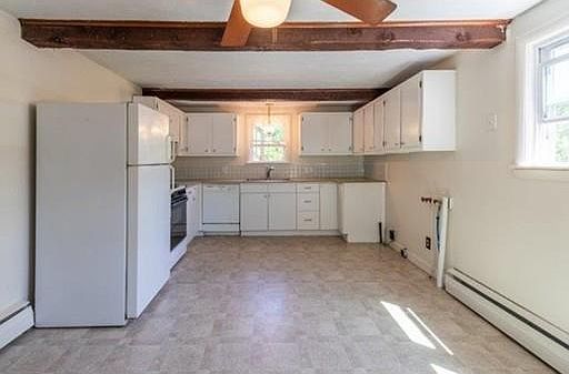 New to the market this rare Tewksbury 3 Family property with a 2500+ sq ft garage. The property has been very well maintained with updates that include a new roof in the last two years, a new driveway installed and the heating systems have been updated. Windows and siding completed within the past 3 years. The garage has 9 foot ceilings on one side and 10 foot ceilings on the other side. There is a water line to the garage. Garage has a separate meter for the electric. Windows replaced two years ago and the siding was completed in 2018. Interior has had some painting and other updates. Two units are vacant shelving in the garage