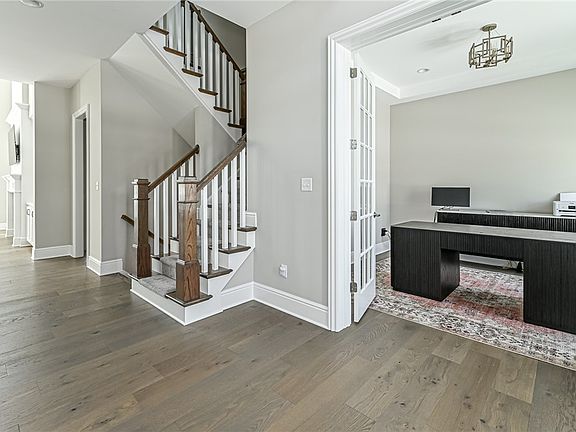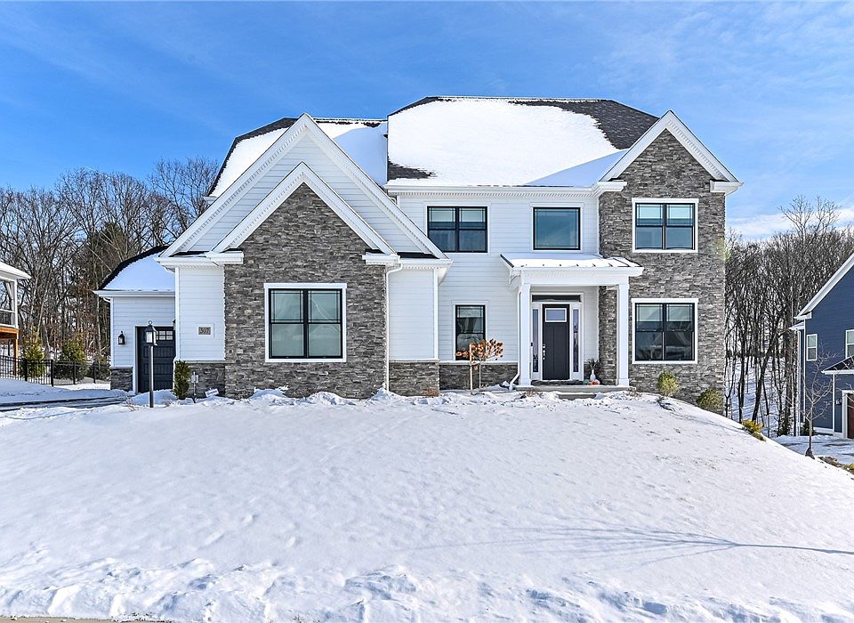 Beautiful 5–6 bedroom, 5.5 bath provincial home located in Spring Way in Marshall Township, North Allegheny Schools. Work from home in the 1st Fl private office with French doors. Abundant natural light fills the two-story great room, creating an inviting atmosphere for everyday living and entertaining. The gourmet kitchen features Thermador appliances, double ovens, walk-in pantry,gas cooktop, stainless steel hood, and stunning granite countertops. Hardwood floors highlight the main level. Guests will appreciate the convenience of a main-level suite with full bath. Upstairs offers four generously sized bedrooms, including a luxurious owner’s suite with soaking tub and tiled glass shower. The walkout lower level includes a spacious game room, 6th bedroom-gym, a full bath, along with versatile space leading to a patio. Situated on a beautiful half-acre level lot backing to woods, this home offers privacy, comfort, and exceptional living space inside and out. Whole Home Generator too!