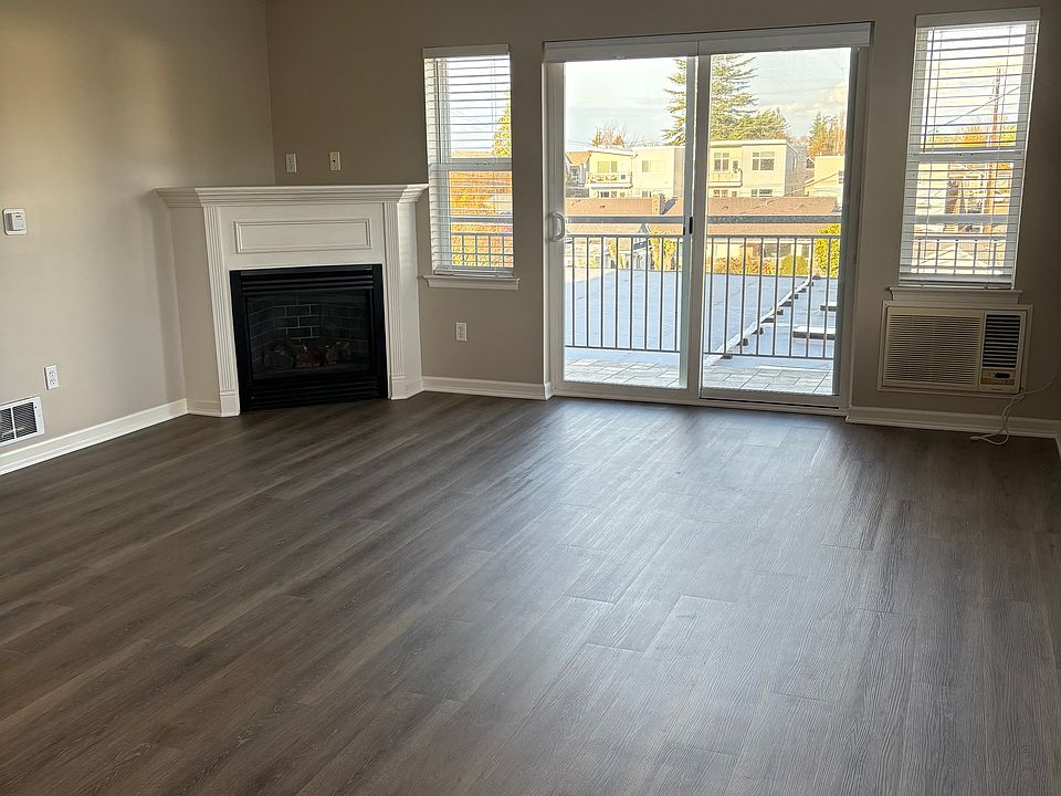 Top floor cheerful corner unit. Two bedroom, two bathroom apartment in downtown Edmonds. Fully secured parking garage, elevator, washer dryer in unit, nice outdoor deck. Large kitchen with stainless appliances. Gas fireplace and air conditioning in living area. Both bedrooms have walk in closets.
