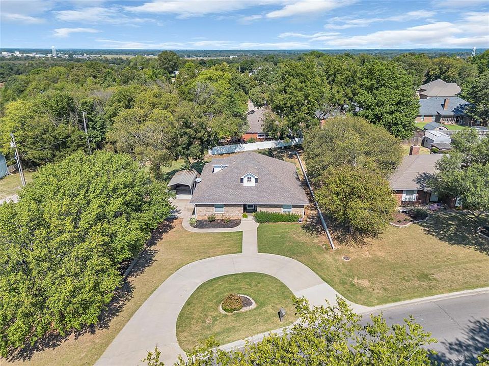 For parking, the home offers a circle drive for easy in-and-out access, plus a separate driveway leading to the attached garage. Along this driveway sits a covered carport, providing additional sheltered parking. A dedicated laundry room with garage access adds even more convenience.