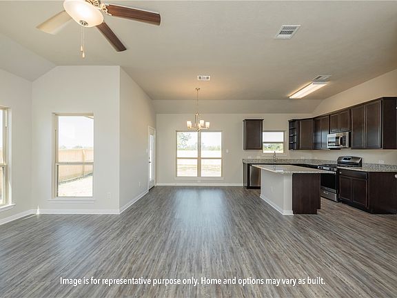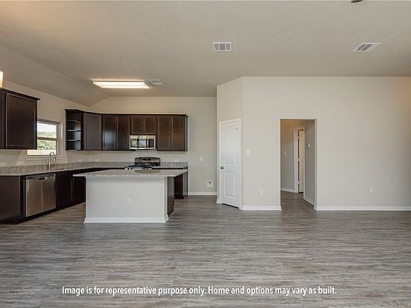 This home is luxury living with 3 bedrooms and 2 baths. This beautiful home features large secondary bedrooms with walk-in closets. Open living, dining and kitchen provides abundant space, without all of the cost. The primary bedroom suite is fit for a king-sized bed, and features a large walk-in closet. Additional options included: Stainless steel appliances, head knocker cabinets in both bathrooms, painted cabinets throughout, a decorative tile backsplash, additional LED recessed lighting, a dual primary bathroom vanity, a door connecting the utility room to the primary closet, and elongated toilets in both bathrooms.