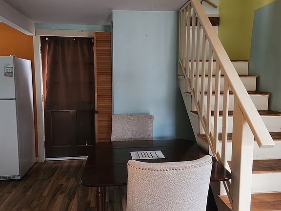 Peaceful, spacious one bedroom townhouse apartment on old farm. Furnished, with essentials provided for immediate move in. Out of town in wooded setting, but close to beaches, hospitals, highways. Abundant parking and ev charger on site. Adjacent to Saco heath and snowmobile trails through wooded area. This is a converted barn attached to my home on nearly two acres - with no shared walls and private entrance. Downstairs consists of living room with sofa and armchair, kitchen with antique Youngstown sink, full size stove and refrigerator. Upstairs consists of huge bedroom with two dressers, large closet, bathroom with stand up shower. Room to set up a small work area outside bedroom. Monitor kerosene heat plus two electric fireplaces for extra warmth when needed. Perfect for short term traveling professionals or temporary stays during home renovations, etc as everything is provided. Wifi, heat, electricity provided. Pets considered. Heat, electricity, water, sewer, wifi, and Level 2 EV charger all included. Furnished, with kitchen setup. Sheets and towels can be provided on request. Prefer short term rental - one to six months, but open to the right fit.