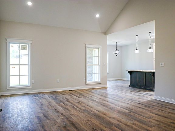 This beautifully designed 4-bedroom, 2-bathroom home with a split-bedroom floorplan and 1,694 sq ft of living space. A cathedral ceiling enhances the spacious living room, while a tray ceiling adds an elegant touch to the primary bedroom. Luxury vinyl plank flooring runs throughout the main areas, with carpet in the bedrooms. The kitchen features soft-close custom cabinets, a large island, and a formal dining area, perfect for hosting. The primary suite offers double vanities, and a stand-alone tile shower. Enjoy outdoor living with a covered porch! Seller offering to pay a portion of the buyer's closing costs. Schedule your showing today!