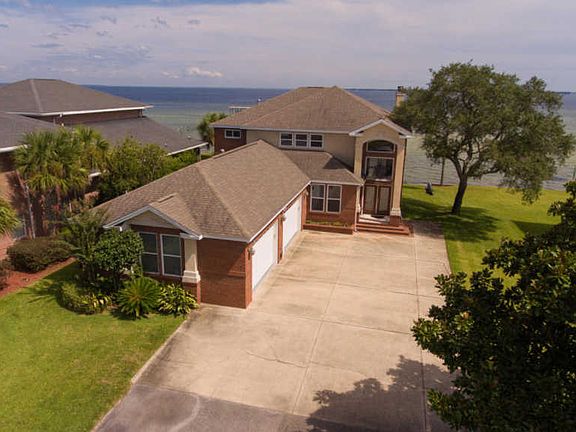 Majestic sunrises over the Choctawhatchee Bay await you in this 3-bedroom, 2.5 bath meticulously maintained waterfront home! Located in the exclusive, gated community of Shalimar Pointe, the home features 2854 sq. ft of living space, 66 ft of waterfrontage, and a lot elevation of approximately 23 ft! No flood insurance required on a lot with such high elevation! The home features a lighted dock with both, power and water, a jet ski lift, and an over-sized sun deck. Enter the home through the double leaded glass doors to a travertine tile entrance and soaring 20 ft ceilings! The entrance of the home leads to an open living space with spectacular views of the Bay from the kitchen and living room.