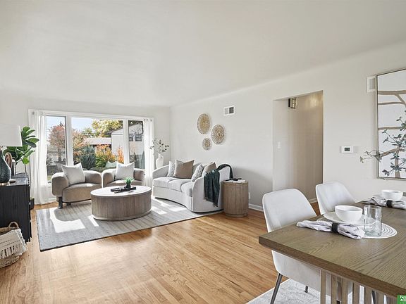 Ranch home in Papillion at a hard-to-find price! This home features 1950s charm as you enter, greeted by beautiful hardwood flooring and tons of natural light. Main level offers two dining spaces, perfect for entertaining, or use the 2nd dining space as an extra sitting area instead! Home features 3 spacious bedrooms, all with ceiling fans. In the kitchen, you'll find a pantry closet and newer 5-burner gas range. Rest-easy with important upgrades done for you, including newer vinyl windows, newer Class 3 Impact-Resistant roof (transferable warranty), newer water heater, BRAND NEW furnace and AC with UV light filtration and humidifier, and upgraded attic insulation for lower utility bills. This home has been truly maintained and updated in all the right ways. Don't miss the extra concrete parking pad! Backyard is a fully-fenced oversized, flat yard. Beautiful landscaping surrounds home with oversized covered back patio. Washer/dryer stay.