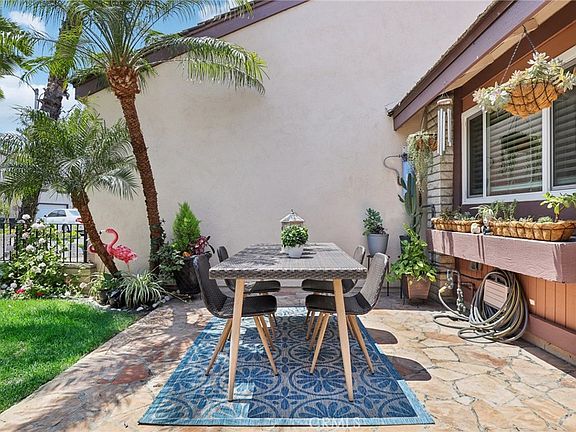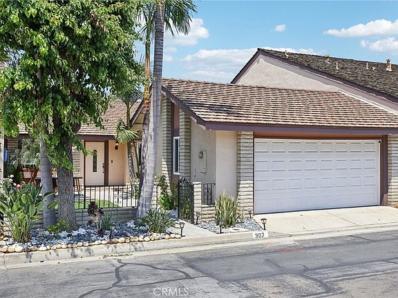 Single level, TURN KEY home situated in highly desired Placentia Village Groves community. Enter this beautiful home through your private gated courtyard with lush grass/landscaping and tropical palm trees - perfect for entertaining friends and family or letting the little ones play safely. Step into an open floor plan with vaulted ceilings, new flooring and fresh paint throughout. Living room with fireplace. Kitchen has been tastefully updated with new cabinets and countertops, new appliances, new Island and sink with the new garbage disposal & Kohler faucets. All windows were replaced in 2021. Newer AC system, new ceiling fans and light fixtures throughout, plus recessed lighting! Spacious primary bedroom with vaulted ceiling and mirrored wardrobes. Water filtration system and all appliances included. 2 car garage with laundry hook ups: NEMA 14-50 outlet 60A in garage. Community has lush greenbelts throughout plus a pool, spa, tennis courts and clubhouse! Conveniently located just minutes from Placentia Library and Civic Center and Cal State Fullerton. Schedule your private tour today!