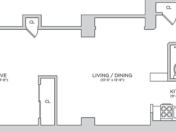Massive corner studio with great light, a lovely kitchen and extra closet space!