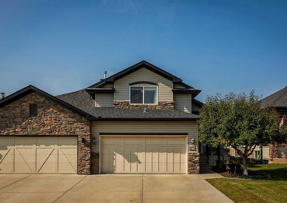 Phenomenal villa backing onto Crystal Ridge Golf Course with stunning west views. Immaculately maintained and thoughtfully designed, this home offers a rare combination of privacy, natural light, and function. Its unique position is set well back from the fairway, meaning you’ll enjoy tranquil golf course views without worrying about golf balls in your yard. Step outside to a covered west-facing deck, where you can relax in the shade while soaking in beautiful evening skies and sweeping vistas. Inside, the main level features hardwood floors, expansive windows, and an open layout oriented toward the golf course. The dining room could easily double as a home office, while the spacious living area connects seamlessly to the well-appointed kitchen, finished with warm maple cabinetry, granite counters, stainless steel appliances, and a walk-through pantry. A large mudroom provides everyday convenience, and the double attached garage easily accommodates two vehicles. Upstairs, the primary retreat offers comfort and style with a private ensuite. A versatile second bedroom/bonus room showcases breathtaking mountain views, ideal as a guest space, office, or additional lounge. The fully finished basement feels bright and airy with high ceilings, big windows, and in-floor heating. Here you’ll find a third bedroom, a full bathroom, and a generous family/rec room that can adapt to any lifestyle. This villa truly blends comfort, function, and location. With exceptional views, a low-maintenance lifestyle (snow removal and lawn care done for you), access to Crystal shores lake (swimming in the summer or skating in the winter), and proximity to both the golf course and Okotoks amenities, it’s a one-of-a-kind opportunity.