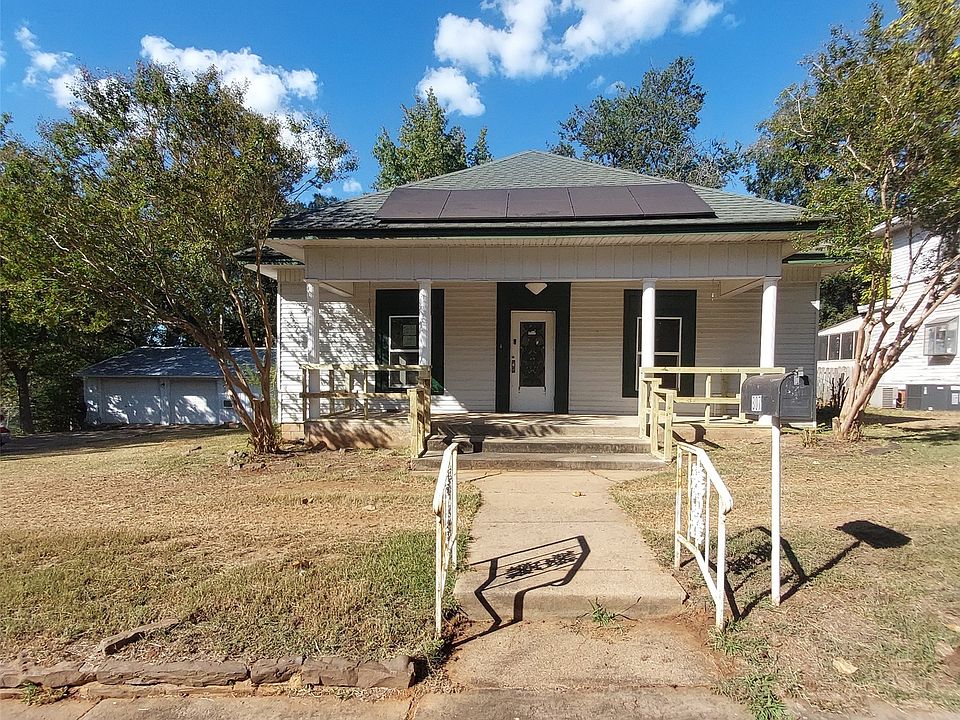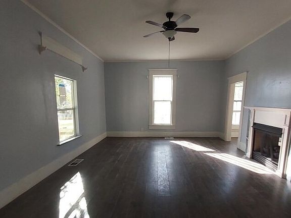 This 3BED 2BATH HOME from the 1940's is spacious at 1740 SQ FT. OPEN FRONT PORCH and a BACKYARD DECK looking out on a fenced-in shaded backyard. There is a large 24'x42' DETACHED METAL GARAGE-WORKSHOP with concrete floor and electric. MASTER BEDROOM has an EN-SUITE BATHROOM with DOUBLE SINKS & WALK-IN SHOWER. The MASTER also has a walk-in closet that is huge, complete with its own window! The second bathroom, with a tub, is shared between the 2nd and 3rd bedrooms and also has DOUBLE SINKS! The 2nd bedroom is very large with 2 entry-exit doors, which would also make a great family room. The living room and the dining room share a SEE-THROUGH FIREPLACE. This home has a lot to offer and won't last long at this price. Come check it out today. Sold AS-IS.